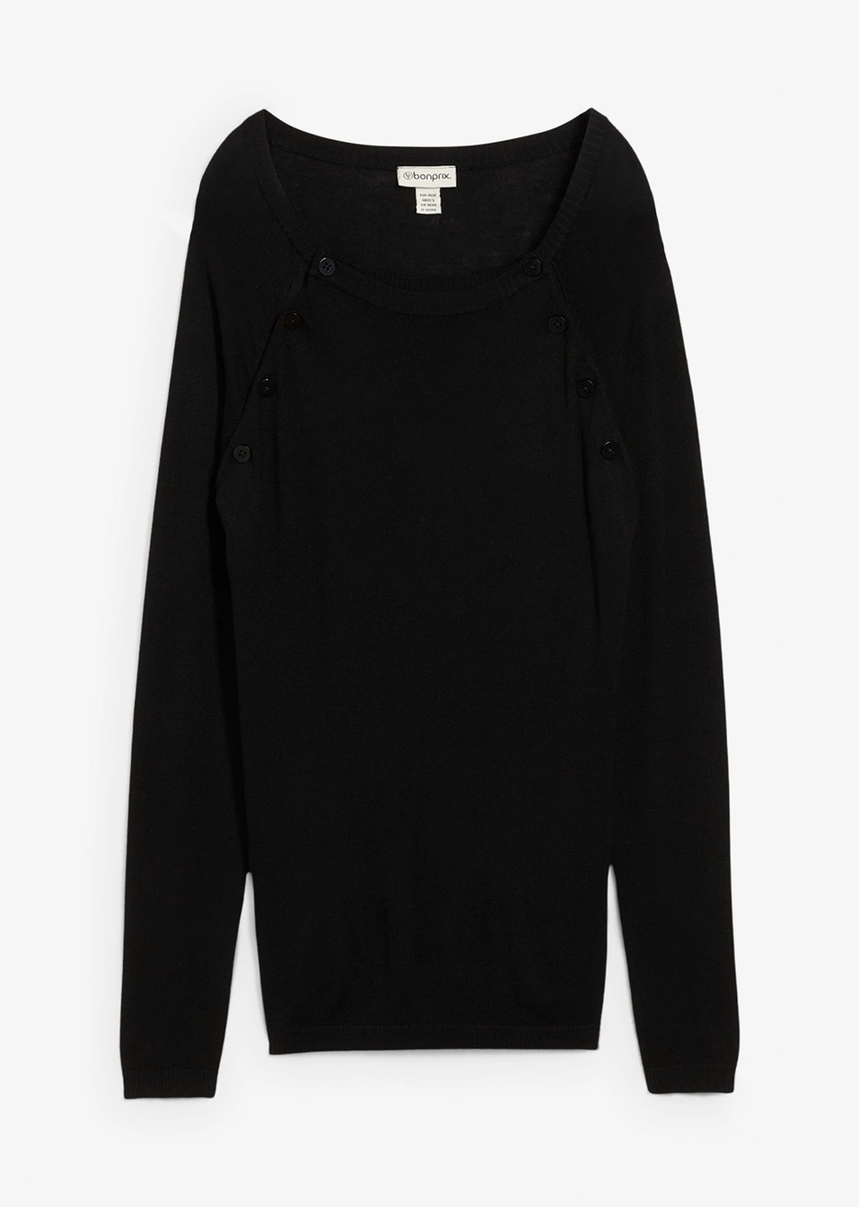 Άνετο πουλόβερ εγκυμοσύνης, κατάλληλο για όλη την περίοδο της εγκυμοσύνης αλλά και μετά τον τοκετό. Με όμορφα κουμπιά στα πλάγια της στρογγυλής λαιμόκοψης, συνδυάζεται εύκολα με τζιν και παντελόνια. Από 80% βισκόζη, 20% πολυαμίδιο.
